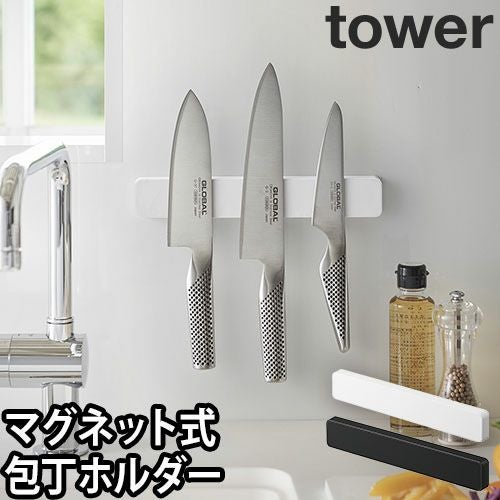 山崎実業/包丁スタンド/包丁立て/マグネット/果物ナイフ/スリム/おしゃれ/シンプル/倒れない/磁石/便利/キッチン収納/壁面収納/包丁収納/ハサミ/工具/収納/yamazaki/タワーシリーズ/ブラック/ホワイト/tower/タワー 山崎実業 包丁スタンド 包丁立て マグネット 果物ナイフ スリム おしゃれ シンプル 倒れない 磁石 便利 キッチン収納 壁面収納 包丁収納 yamazaki タワーシリーズ [tower タワー マグネット&ウォール包丁ホルダー W25 5199 5200 4903208051996 4903208052009]