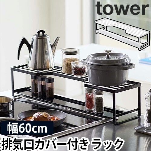 山崎実業/キッチンラック/コンロ奥ラック/スパイスラック/排気口カバー/コンロカバー/グリルカバー/調味料ラック/スリム/ラック/キッチン収納/キッチン/台所/収納/yamazaki/タワーシリーズ/白/ホワイト/黒/ブラック 山崎実業 キッチンラック コンロ奥ラック スパイスラック 排気口カバー コンロカバー グリルカバー 調味料ラック スリム ラック キッチン収納 yamazaki タワーシリーズ [tower タワー コンロ奥ラック 排気口カバー付 60cmコンロ用 5268 5269 4903208052689 4903208052696]