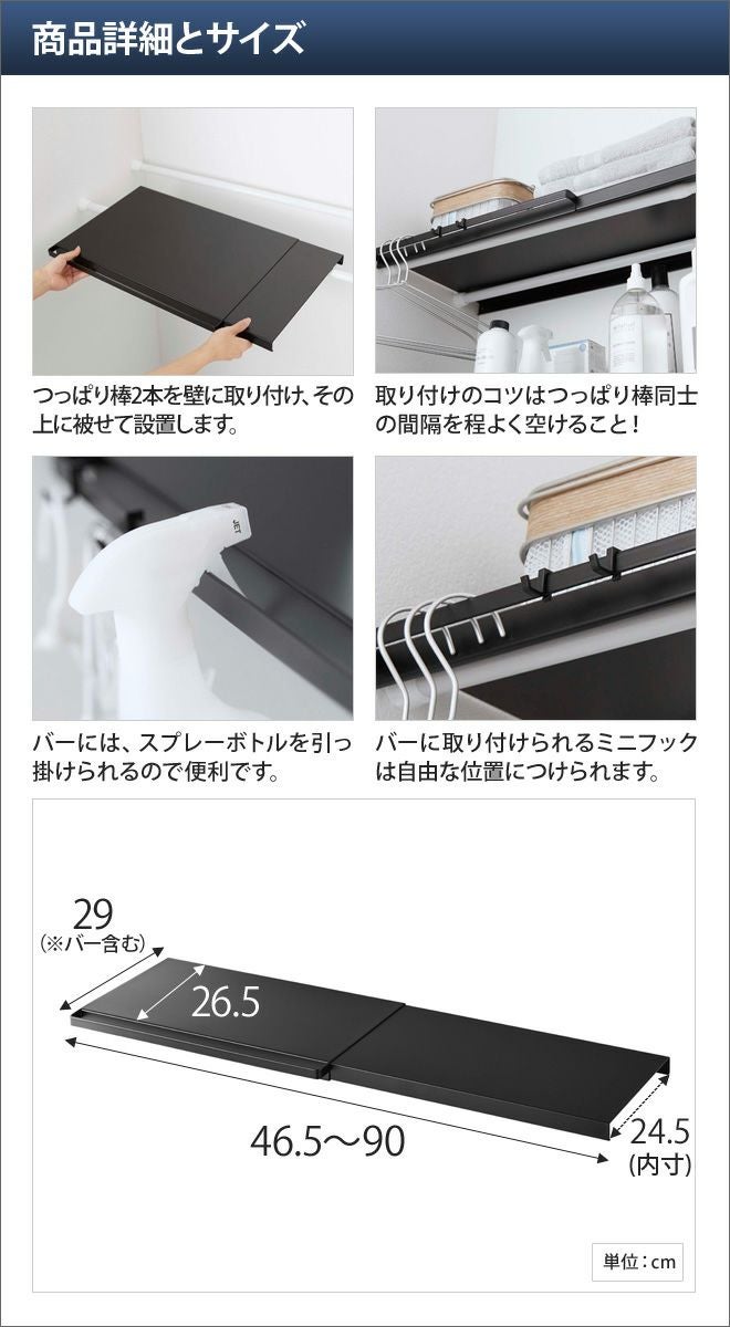 山崎実業/ランドリーラック/収納ラック/オープンラック/ウォールシェルフ/収納棚/トイレラック/洗濯機収納/サニタリー収納/つっぱり収納/タオル/洗剤/ハンガー/収納/yamazaki/タワーシリーズ/tower/タワー/伸縮 山崎実業 ランドリーラック収納ラック オープンラック ウォールシェルフ 収納棚 トイレラック 洗濯機収納 サニタリー収納 つっぱり収納 yamazaki タワーシリーズ [tower タワー 伸縮 つっぱり棒用棚板 S 5320 5321 4903208053204 4903208053211]
