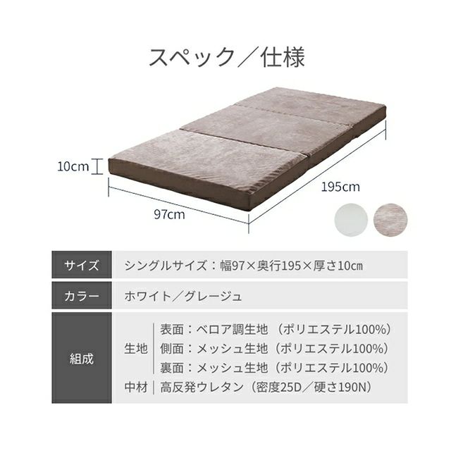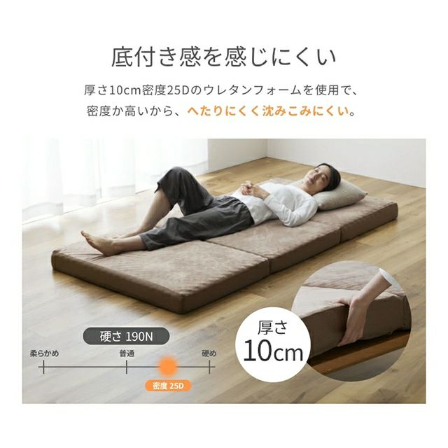 他の画像を見る 極厚10cmの高反発マットレス。硬めウレタンとプロファイル加工で身体を点で支えます。使い分けできるアウターカバーはお洗濯可能でいつでも清潔にご利用いただけます。 ナイスデイ 高反発 マットレス 3つ折り高反発マットレス10cm 190N/25Dシングル シングル 折りたたみ 三つ折り 10cm 厚い リバーシブル 洗えるカバー 新生活 プロファイル加工 硬め 凹凸 ベロア調 メッシュ生地 コンパクト 敷布団 Niceday 当店特別価格 ¥ 6,990 税込 詳細を見る お気に入りに登録する