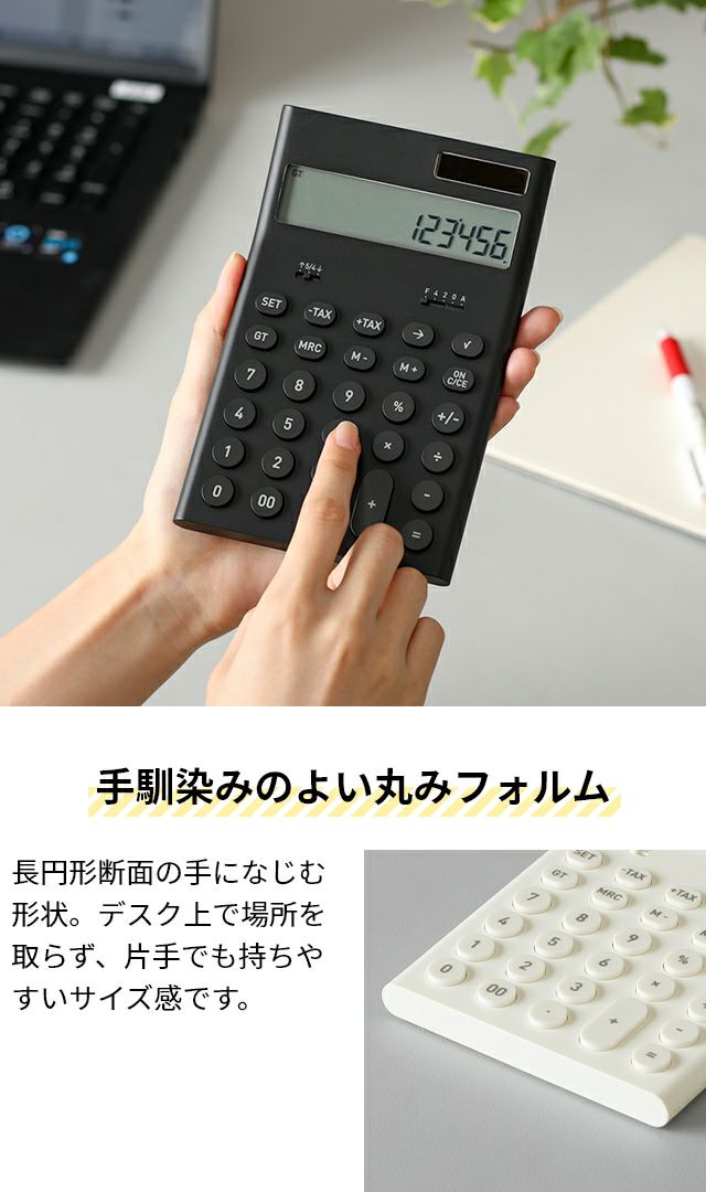 他の画像を見る シンプルな美しさと充実機能でロングセラーの電卓。簿記や経理など実務で使える12桁表示で、税計算・定数計算・ルート計算・GT機能・メモリー機能など多機能を搭載。 プラスマイナスゼロ プラマイゼロ 電子計算機 M ZZD-J010 電卓 ソーラー電卓 カリキュレーター 12桁 おしゃれ かわいい シンプル 打ち やすい 使いやすい 経理 携帯 消費税 税率 設定 変更 ルート 付き 持ち運び 実務 簿記 丸 パーセント ±0 当店特別価格 ¥ 3,300 税込 詳細を見る お気に入りに登録する