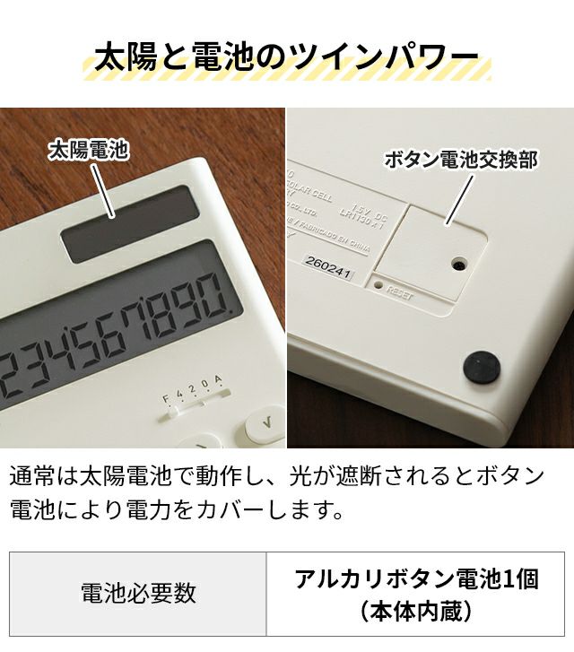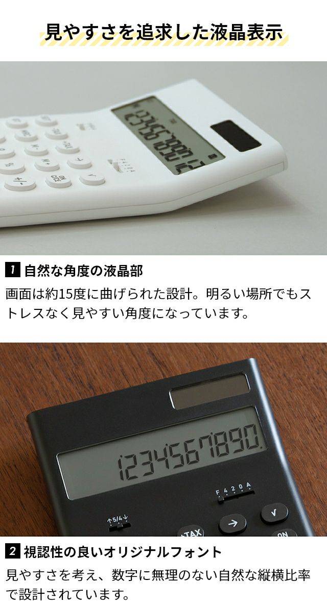 他の画像を見る シンプルな美しさと充実機能でロングセラーの電卓。簿記や経理など実務で使える12桁表示で、税計算・定数計算・ルート計算・GT機能・メモリー機能など多機能を搭載。 プラスマイナスゼロ プラマイゼロ 電子計算機 M ZZD-J010 電卓 ソーラー電卓 カリキュレーター 12桁 おしゃれ かわいい シンプル 打ち やすい 使いやすい 経理 携帯 消費税 税率 設定 変更 ルート 付き 持ち運び 実務 簿記 丸 パーセント ±0 当店特別価格 ¥ 3,300 税込 詳細を見る お気に入りに登録する