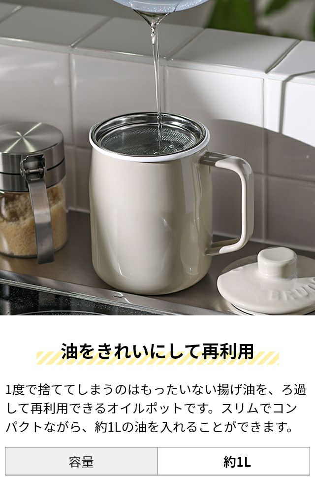 他の画像を見る 1度で捨ててしまうのはもったいない揚げ油を、ろ過して再利用できるオイルポットです。スリムでコンパクトながら、約1Lの油を入れることができます。 ブルーノ ホーローオイルポット 1.0L BHK297 油こし器 おしゃれ スリム コンパクト 小さめ ステンレス 琺瑯 富士ホーロー 油返し 揚げ鍋 揚げ物鍋 天ぷら鍋 ろ過 油 再利用 網 容器 レトロ おすすめ かわいい 1リットル BRUNO 当店特別価格 ¥ 5,060 税込 在庫切れ 詳細を見る お気に入りに登録する