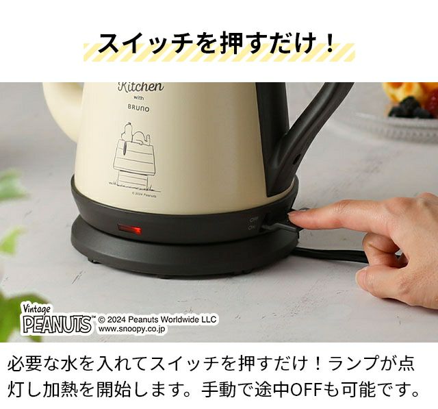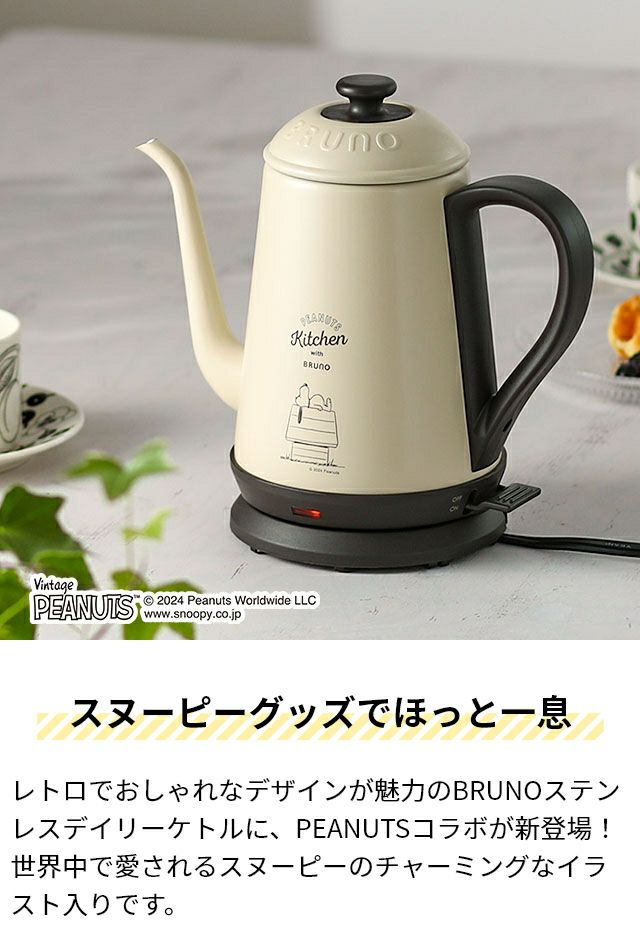 他の画像を見る レトロでおしゃれなデザインが魅力のBRUNOステンレスデイリーケトルに、PEANUTSコラボが新登場!世界中で愛されるスヌーピーのチャーミングなイラスト入りです。 ブルーノ 電気ケトル ピーナッツ ステンレスデイリーケトル BOE072 ドリップポット やかん 湯沸かし器 電気ポット ポット ステンレス おしゃれ かわいい スヌーピー グッズ 空焚き防止 細口 ハンドドリップ コーヒー 1リットル 1l BRUNO PEANUTS 当店特別価格 ¥ 9,130 税込 在庫切れ 詳細を見る お気に入りに登録する