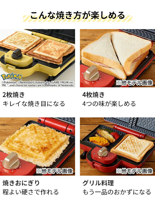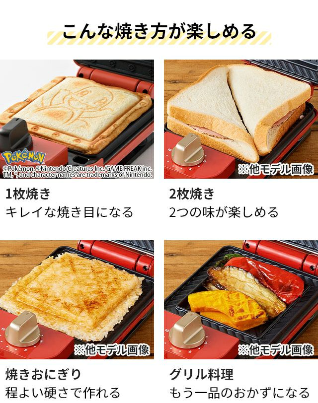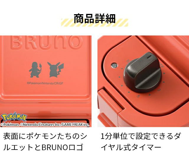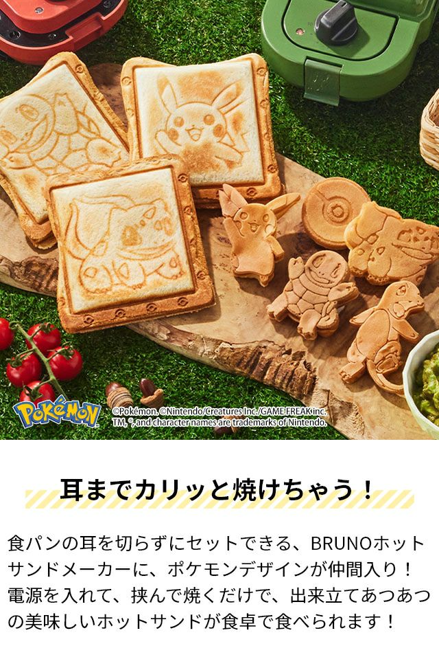 他の画像を見る 食パンの耳を切らずにセットできる、BRUNOホットサンドメーカーに、ポケモンデザインが仲間入り!ピカチュウたちの焼き目がついた、あつあつホットサンドが食べられます! ブルーノ ポケモン ホットサンドメーカー ダブル BOE132 2枚焼き 耳まで 電気 タイマー おうちカフェ 食パン サンドイッチ 朝食 おしゃれ かわいい 着脱式 洗える ピカチュウ ヒトカゲ フシギダネ ゼニガメ ミニケーキ 人形焼 おすすめ BRUNO 当店特別価格 ¥ 10,010 税込 在庫切れ 詳細を見る お気に入りに登録する