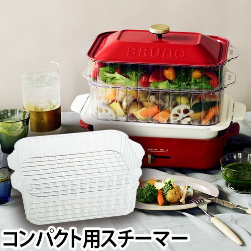 他の画像を見る コンパクトホットプレートで美味しい蒸し料理が楽しめる、2段タイプの専用蒸し器です。同時調理すれば蒸し汁のうまみを余すこと無く活かせます。 BRUNO コンパクトホットプレート用スチーマー 当店特別価格 ¥ 5,280 税込 在庫切れ 詳細を見る お気に入りに登録する