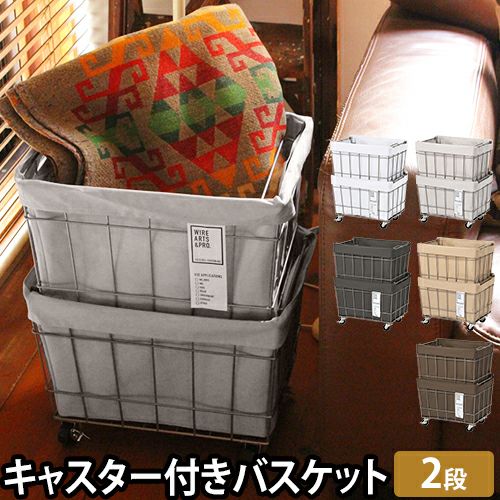 レトロなアメリカンスタイルの雰囲気漂う、お洒落な2段タイプのバスケットです。