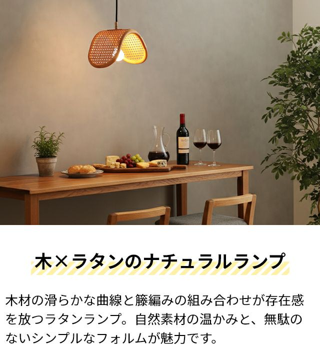 他の画像を見る 木材の滑らかな曲線と天然の籐の組み合わせが存在感を放つペンダントライト。シェードは一つ一つ手編みで制作され、編み目から漏れる光が柔らかく空間を照らします。 ブリッド オリカ 【選べる2大特典】 ペンダントライト ナチュラル ラタンペンダントランプ 1バルブ 電球あり おしゃれ ダイニング 北欧 1灯 かわいい 木 キッチン 寝室 小さめ トイレ 籐 和モダン ラタン 玄関 BRID OLIKA RATTAN PENDANT LAMP 1BULB 当店特別価格 ¥ 20,020 税込 詳細を見る お気に入りに登録する