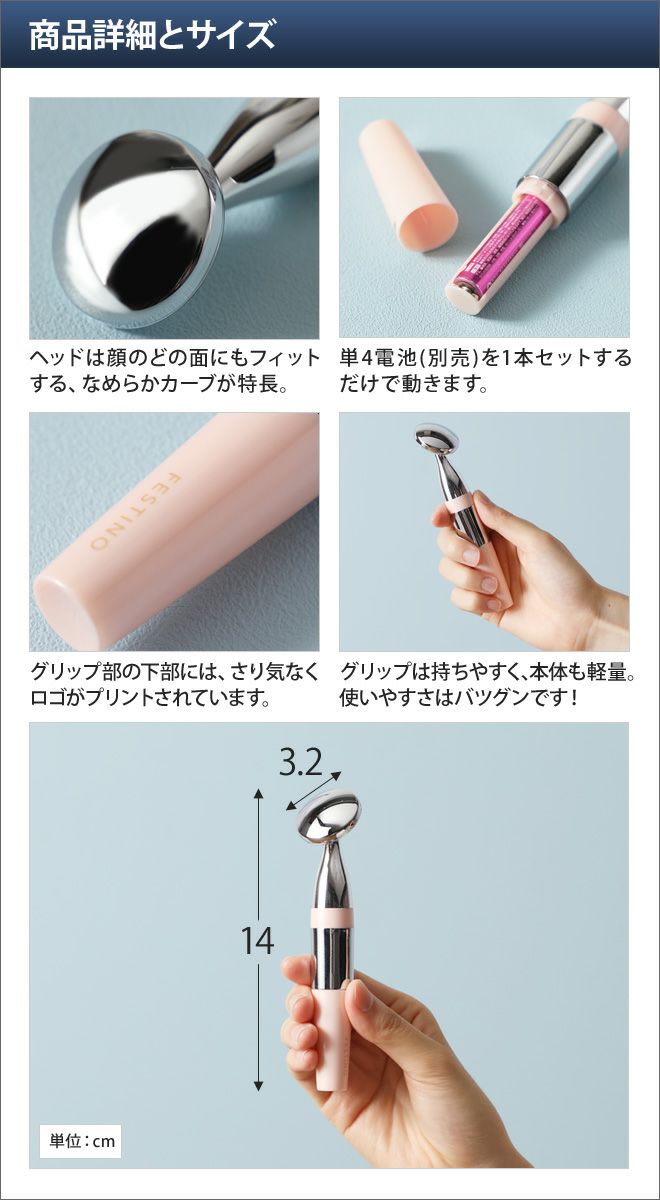 他の画像を見る 美顔器/マイクロカレント/音波振動/フェイシャルスキントリートメント/乾電池駆動/スキンケア/フェスティノ/FESTINO 美顔器 マイクロカレント 音波振動 フェイシャルスキントリートメント 乾電池駆動 スキンケア フェスティノ FESTINO 当店特別価格 ¥ 2,970 税込 在庫切れ 詳細を見る お気に入りに登録する
