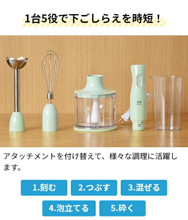 他の画像を見る 氷も砕くハイパワー!つぶす、混ぜる、泡立てる、刻む、砕くをコレ1台で!1台5役のマルチスティックブレンダー。 ブルーノ 【選べる豪華特典】 マルチスティックブレンダー BOE034 ハンドブレンダー ハンディブレンダー ハンドミキサー フードプロセッサー ホイッパー 泡立て器 食洗機対応 氷も砕ける 離乳食 介護食 チョッパー付き 電動 おしゃれ BRUNO 当店特別価格 ¥ 7,150 税込 在庫切れ 詳細を見る お気に入りに登録する
