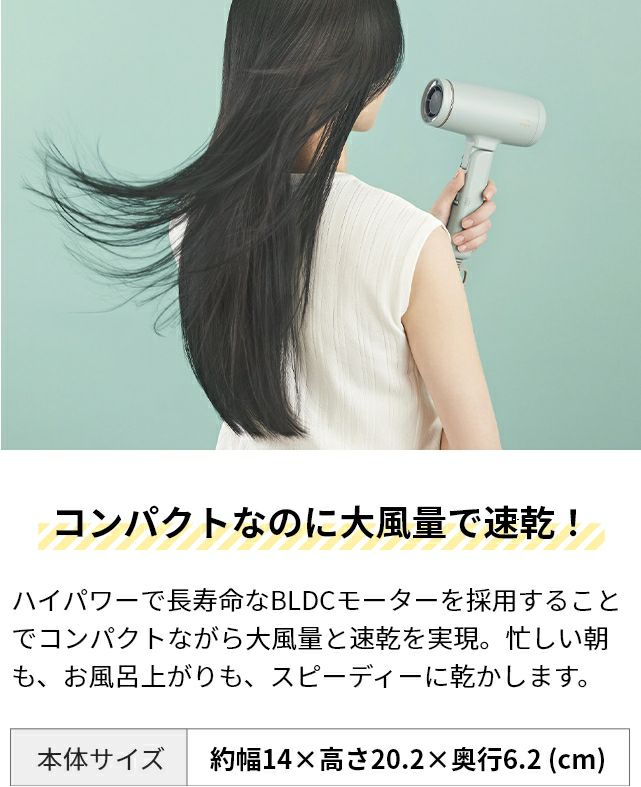 他の画像を見る 大風量と幅広設計でスピーディーに乾かすドライヤー。マイナスイオンで、しっとりまとまるなめらかな仕上がりへ。低温風で頭皮ケア、温冷風の自動切り替えでツヤ髪に。 ブルーノビューティ ドライヤー 大風量 コンパクトヘアドライヤー BOE146 ヘアードライヤー マイナスイオンドライヤー 低温 速乾 マイナスイオン 軽い 1200w 強風 折り畳み さらさら しっとり ツヤ 美髪 BRUNO beauty+ 当店特別価格 ¥ 19,800 税込 在庫切れ 詳細を見る お気に入りに登録する