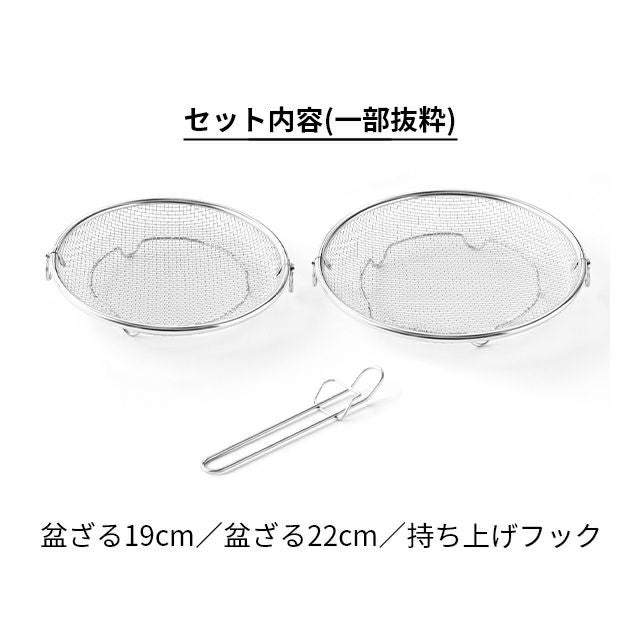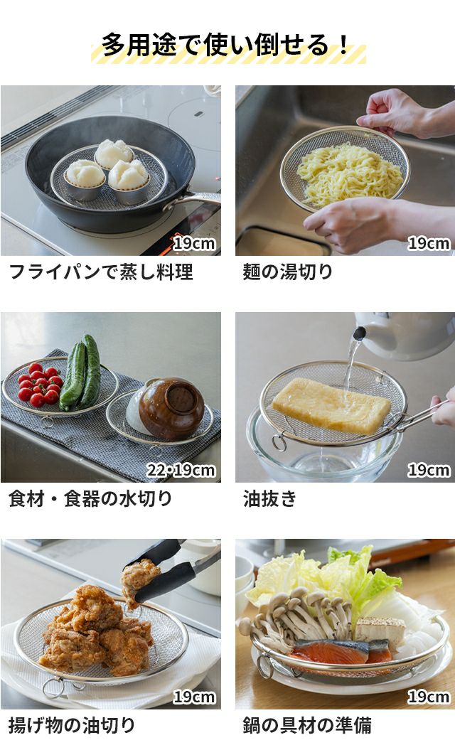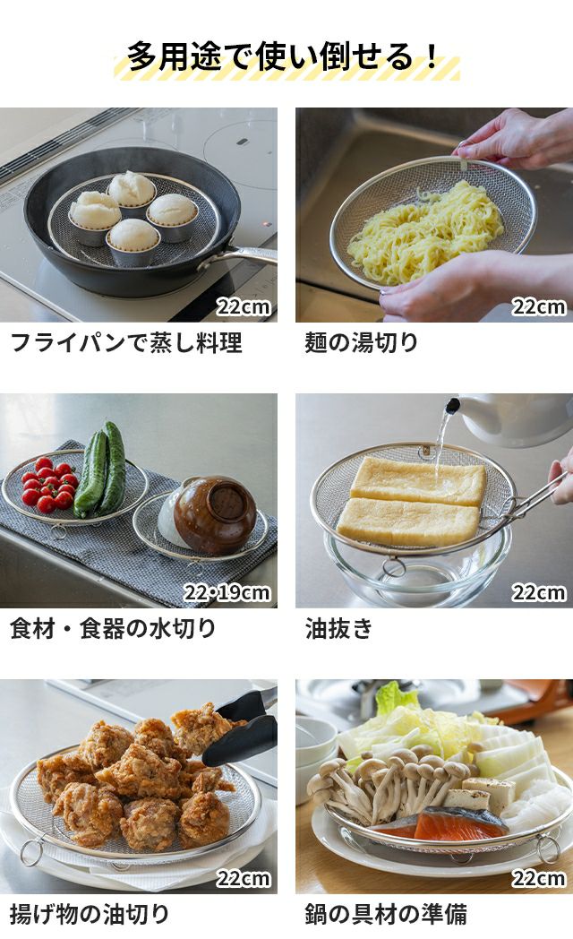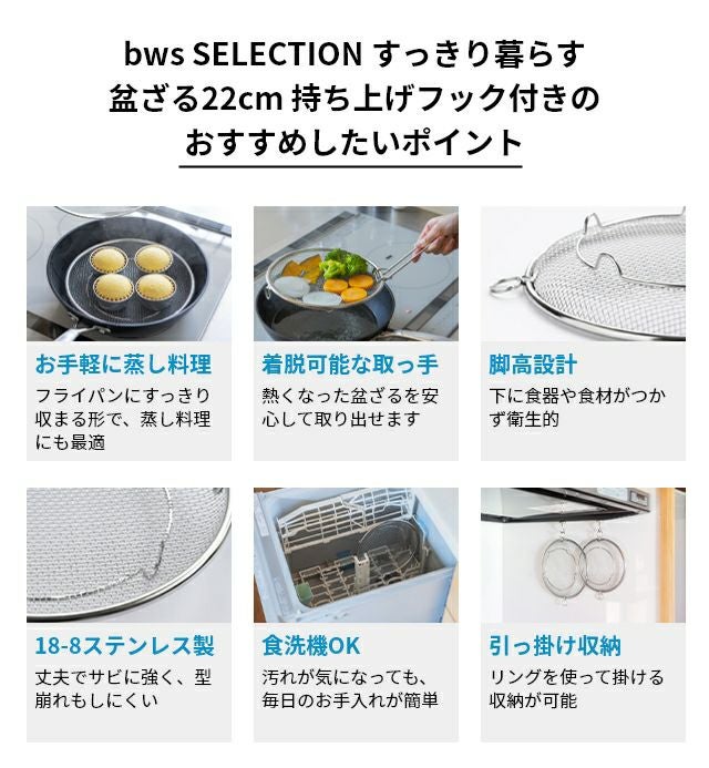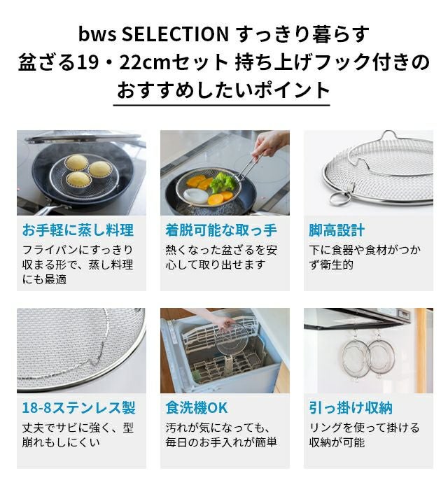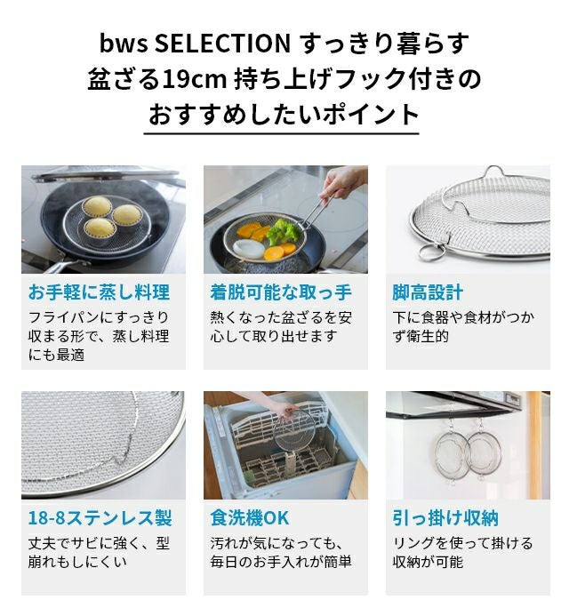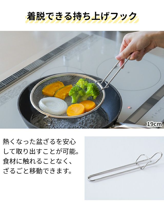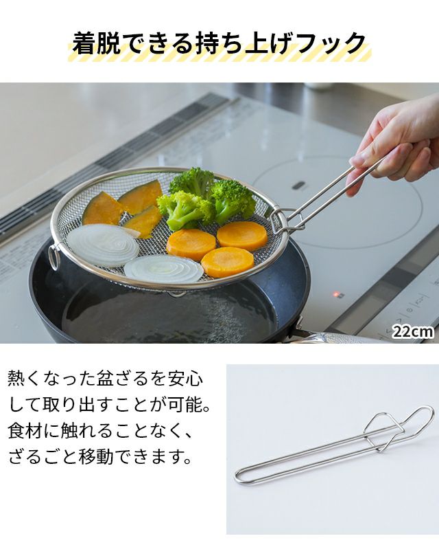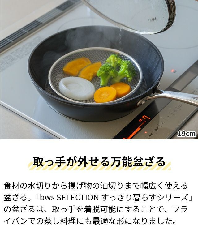 他の画像を見る 取っ手を取り外してフライパンにセットするだけで、お手軽に蒸し料理が可能。他にも、食器・野菜の水切りから麺の湯切り、揚げ物の油切りなど、幅広く使える盆ざるです。 ビーワースセレクション 【選べる豪華特典】 すっきり暮らす盆ざる19・22cmセット 持ち上げフック付き 蒸しざる 平ざる せいろ 水切り ステンレス 取っ手付き 燕三条 おしゃれ 足つき キッチン 日本製 18 8 揚げ物 浅型 食洗機対応 bws SELECTION 当店特別価格 ¥ 4,510 税込 詳細を見る お気に入りに登録する