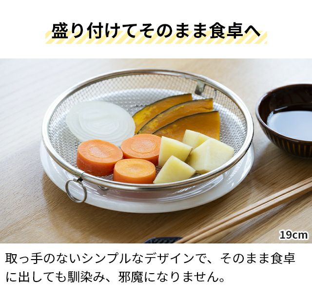 他の画像を見る 取っ手を取り外してフライパンにセットするだけで、お手軽に蒸し料理が可能。他にも、食器・野菜の水切りから麺の湯切り、揚げ物の油切りなど、幅広く使える盆ざるです。 ビーワースセレクション 【選べる豪華特典】 すっきり暮らす盆ざる19cm 持ち上げフック付き 蒸しざる 平ざる 丸ざる せいろ 水切り ステンレス 取っ手付き 燕三条 おしゃれ 足つき キッチン 日本製 18 8 揚げ物 浅型 食洗機対応 そば bws SELECTION 当店特別価格 ¥ 2,750 税込 詳細を見る お気に入りに登録する