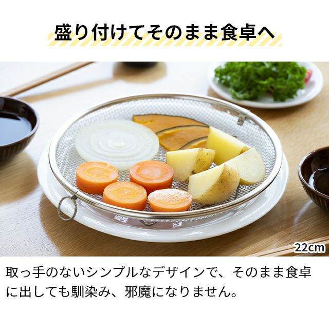 他の画像を見る 取っ手を取り外してフライパンにセットするだけで、お手軽に蒸し料理が可能。他にも、食器・野菜の水切りから麺の湯切り、揚げ物の油切りなど、幅広く使える盆ざるです。 ビーワースセレクション 【選べる豪華特典】 すっきり暮らす盆ざる22cm 持ち上げフック付き 蒸しざる 平ざる 丸ざる せいろ 水切り ステンレス 取っ手付き 燕三条 おしゃれ 足つき キッチン 日本製 18 8 揚げ物 浅型 食洗機対応 そば bws SELECTION 当店特別価格 ¥ 3,080 税込 詳細を見る お気に入りに登録する