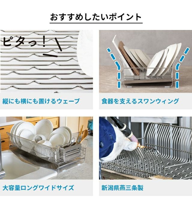 他の画像を見る 縦にも横にもお皿が立つ、革新的な水切りラック。考えなくても良いお皿洗いを手助けします!新潟県燕三条で職人が1点ずつ丁寧に作っています。 ハナウタ 【選べる豪華特典】 ディッシュドレイナー 水切りラック 縦置きロングワイド カゴ&トレイ 水切りかご シンク上 日本製 ステンレス キッチン 大容量 食器 排水 おしゃれ 大きい 燕三条 水が流れる 4人家族 57cm 洗いやすい hanauta 当店特別価格 ¥ 19,800 税込 詳細を見る お気に入りに登録する