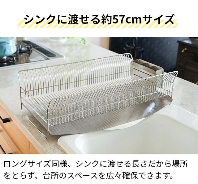 他の画像を見る 縦にも横にもお皿が立つ、革新的な水切りラック。考えなくても良いお皿洗いを手助けします!新潟県燕三条で職人が1点ずつ丁寧に作っています。 ハナウタ 【選べる豪華特典】 ディッシュドレイナー 水切りラック 縦置きロングワイド 水切りかご 箸立て シンク上 日本製 ステンレス キッチン 大容量 食器 排水 おしゃれ 大きい 燕三条 水が流れる 4人家族 57cm 洗いやすい トレー付き hanauta 当店特別価格 ¥ 24,750 税込 詳細を見る お気に入りに登録する