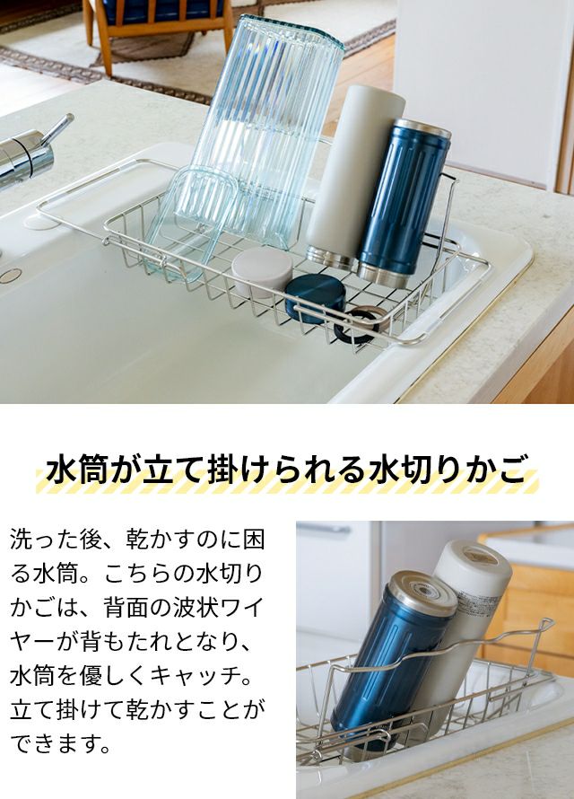 他の画像を見る 洗った後、乾かすのに困る水筒を立てかけられる「背もたれ」が付いた水切りかご。浅型ながらも、フライパンや大皿も立てられる収納力。シンク内に収まる伸縮式です。 ビーワースセレクション 【選べる豪華特典】 すっきり暮らす 立て掛けられるシンク渡し水切り 水切りラック 水切りかご ボトルスタンド 水筒スタンド ステンレス 伸縮 日本製 食器 コンパクト 2way キッチンシンク シンク内 スライド bws SELECTION 当店特別価格 ¥ 5,940 税込 詳細を見る お気に入りに登録する