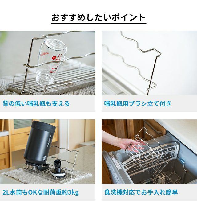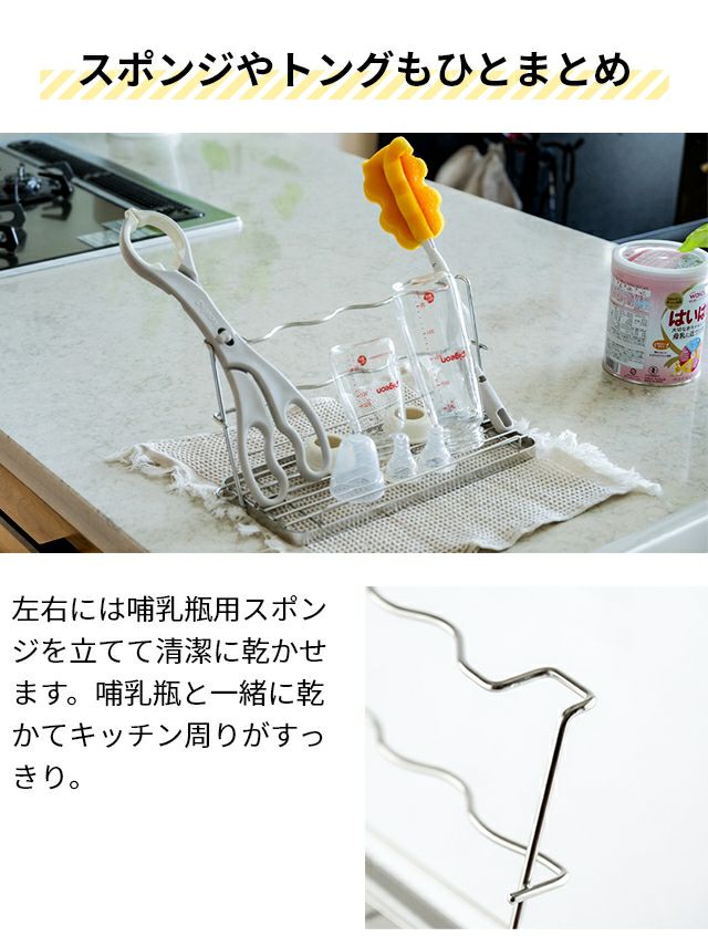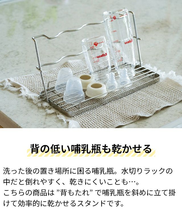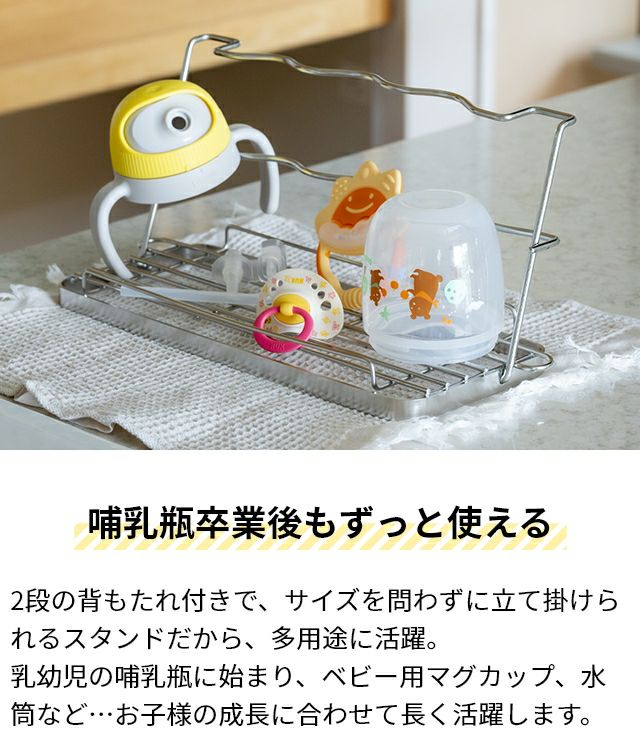 他の画像を見る 2段の背もたれで背の低い哺乳瓶も、2Lサイズの水筒も、立て掛けられる水切りスタンド。波型背もたれで、ボトルが転がらずしっかり乾かせます。哺乳瓶用スポンジ立て付き。 ビーワースセレクション 【選べる豪華特典】 哺乳瓶 スタンド すっきり暮らす ベビーボトルスタンド 水切りラック 水筒スタンド ボトルラック スリム 折りたたみ キッチン コンパクト 干す 斜め おしゃれ 乾燥 ステンレス 乾かす ベビー用品 日本製 bws SELECTION 当店特別価格 ¥ 3,850 税込 詳細を見る お気に入りに登録する