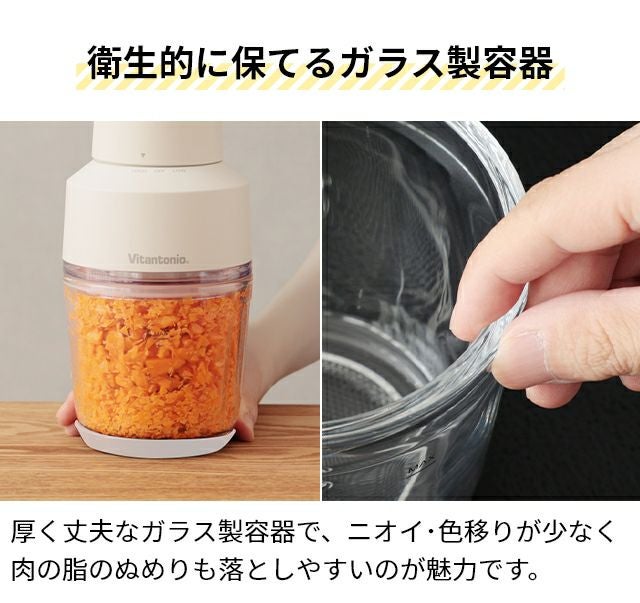 他の画像を見る 1台12役で毎日使える!撹拌能力がさらにアップし、2段階の速度調整も可能に。低速では食材の大きさを調整しやすく、高速では素早く調理します。離乳食作りにもぴったり! ビタントニオ 【選べる豪華特典】 フードプロセッサー VCR-50 ミキサー ブレンダー チョッパー 小型 スムージー 離乳食 洗いやすい ガラス製 野菜 みじん切り お菓子 ペースト状 コンパクト 氷も砕ける 肉 ミンチ ふりかけ 大根おろし Vitantonio 当店特別価格 ¥ 7,700 税込 詳細を見る お気に入りに登録する