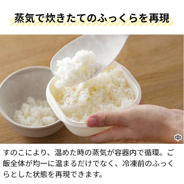 他の画像を見る 全米販・お米マイスター徳永氏共同企画。蓋をしたまま電子レンジで温めるだけで、冷凍ご飯をムラなくふっくらと温められる保存容器。お手入れ簡単、重ねて収納できます。 マーナ 【選べる豪華特典】 極 冷凍ごはん容器 中 単品 保存容器 蒸し器 冷凍容器 ごはん保存容器 プラスチック 冷凍ご飯 すのこ付き 解凍 米 食洗機 オシャレ bpaフリー 四角 ご飯 コンパクト収納 電子レンジ対応 重ねて収納 薄型 冷凍 marna 当店特別価格 ¥ 780 税込 詳細を見る お気に入りに登録する