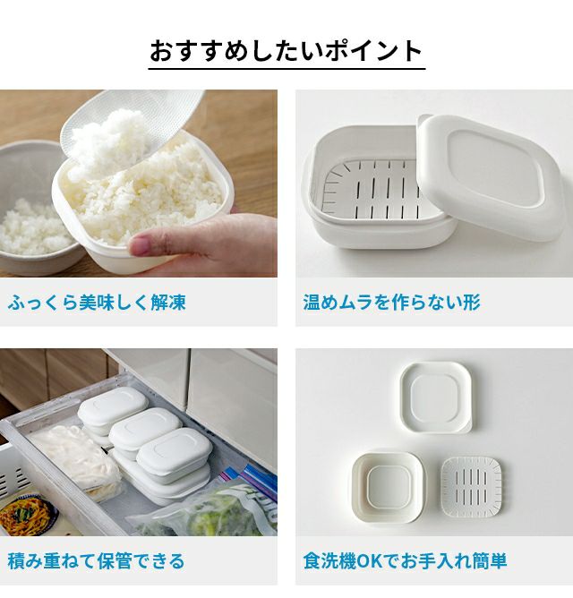 他の画像を見る 全米販・お米マイスター徳永氏共同企画。蓋をしたまま電子レンジで温めるだけで、冷凍ご飯をムラなくふっくらと温められる保存容器。お手入れ簡単、重ねて収納できます。 マーナ 【選べる豪華特典】 極 冷凍ごはん容器 小 4個セット 保存容器 蒸し器 冷凍容器 ごはん保存容器 プラスチック 冷凍ご飯 すのこ付き 解凍 米 食洗機 オシャレ bpaフリー 四角 ご飯 コンパクト収納 電子レンジ対応 重ねて収納 薄型 冷凍 marna 当店特別価格 ¥ 1,960 税込 詳細を見る お気に入りに登録する