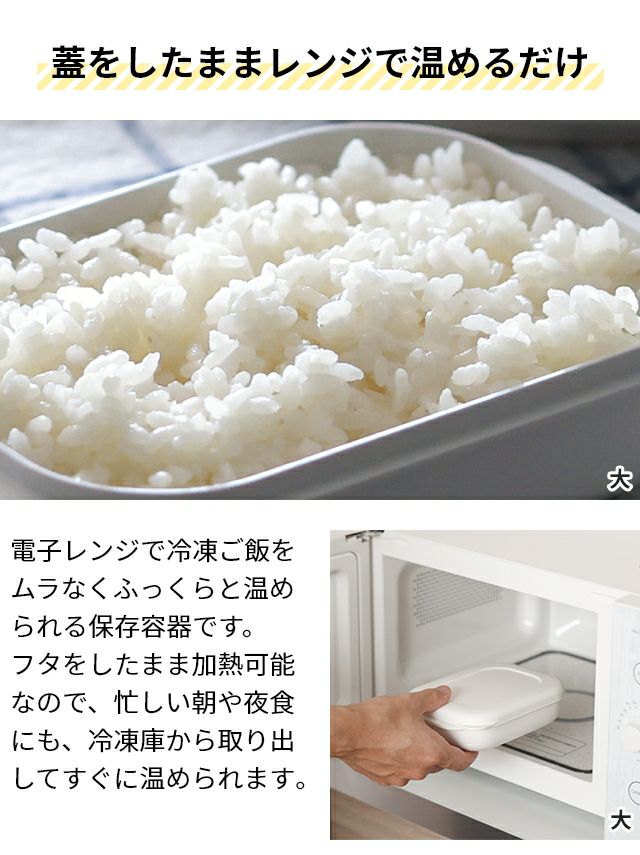 他の画像を見る 全米販・お米マイスター徳永氏共同企画。蓋をしたまま電子レンジで温めるだけで、冷凍ご飯をムラなくふっくらと温められる保存容器。お手入れ簡単、重ねて収納できます。 マーナ 【選べる豪華特典】 極 冷凍ごはん容器 大 単品 保存容器 蒸し器 冷凍容器 ごはん保存容器 プラスチック 冷凍ご飯 すのこ付き 解凍 米 食洗機 オシャレ bpaフリー 四角 ご飯 コンパクト収納 電子レンジ対応 重ねて収納 薄型 冷凍 marna 当店特別価格 ¥ 968 税込 詳細を見る お気に入りに登録する