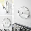 繰り返し貼れるフィルムフックで簡単設置。キッチンパネルはもちろん、マグネットがつかないタイルやガラス面にも貼り付けることができます!