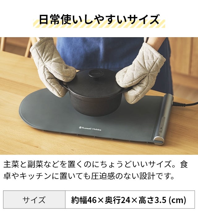 他の画像を見る 家族の時間差ごはんや、フードデリバリー、ゆっくり食事を楽しみたいときに!広げて保温、丸めて収納できる卓上食品保温プレート。タッチパネル式で4段階の温度設定付き。 ラッセルホブス 【選べる豪華特典】 保温プレート フードウォーマーパッド 3300JP フードウォーマープレート テーブルウォーマー 食品保温プレート 卓上 シリコン 鍋 低温 カップ コーヒー 1人 おしゃれ 100度 温度調節 折りたたみ Russell Hobbs 当店特別価格 ¥ 6,600 税込 詳細を見る お気に入りに登録する
