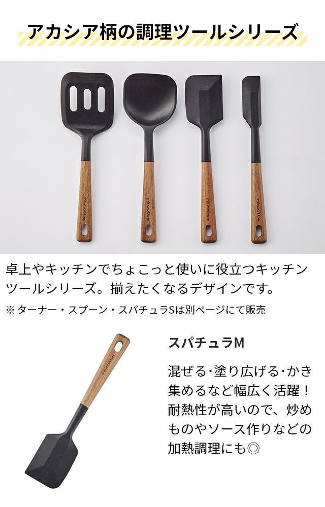 雰囲気のあるアカシア柄のキッチンスパチュラ。耐熱性が高く、先端が柔らかいため調理器具を傷つけにくく、お手入れも簡単。直置きしても先端が浮くため、衛生的! レコルト ゴムベラ キッチンツールシリーズ シリコンスパチュラM ゴムヘラ キッチンヘラ ヘラ 料理 小 フライパン シリコン ミニ お菓子作り 持ち手 木 耐熱 オムレツ かわいい おしゃれ キッチン 柔らかい ジャム 小さい 弾力 調理 recolte
