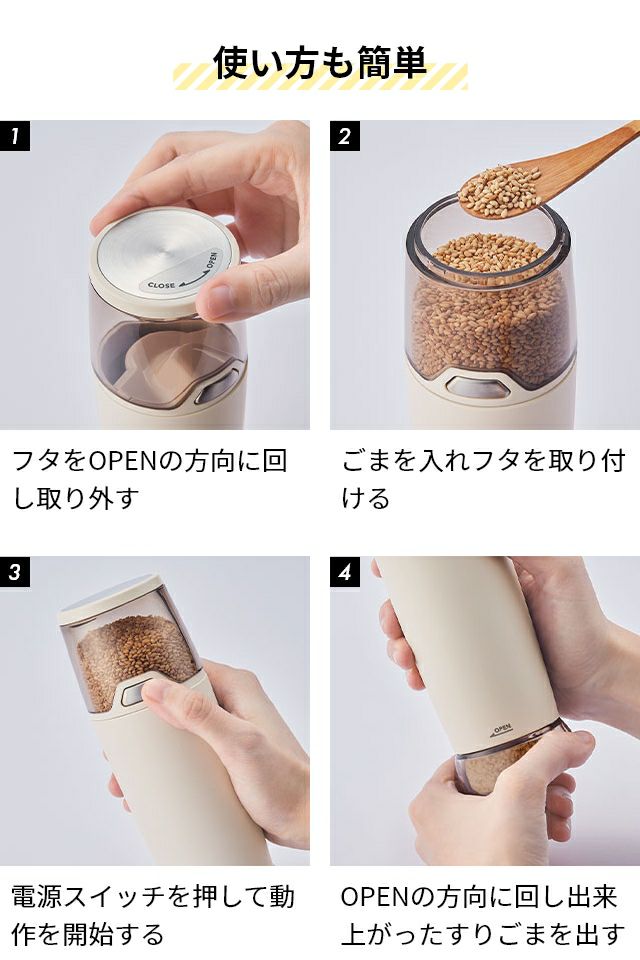 「recolte電動ゴマスリ」は、出しっぱなしでもお部屋やキッチンに馴染むおしゃれなデザインのごますり器。栄養豊富で健康や美容に良いと人気なごまを毎日手軽に楽しめます。 レコルト ごますり器 電動ゴマスリ RSG-1-W ごまミル 電動 セラミック 卓上 小さい 洗いやすい 調理器具 おしゃれ 人気 おすすめ 乾電池式 すりごま いりごま 黒ごま 白ごま 金ごま 胡麻 挽きたて 風味 味わい 手軽 調味料入れ recolte