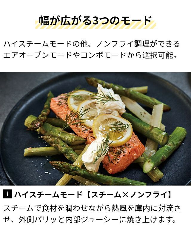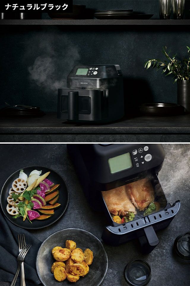 ノンフライ調理家電エアーオーブンに、スチーマー機能も搭載したハイスチームエアーオーブン! 食材の潤いを閉じ込めて焼き上げるから、しっとりこんがり感動の美味しさ。 レコルト 【特典レシピ付き】 ノンフライヤー ハイスチームエアーオーブン RAO-3 電気フライヤー エアオーブン エアフライヤー 電気蒸し器 フードスチーマー コンパクト 卓上 小型 電気 家庭用 揚げ物 温め直し 一人暮らし 手入れ簡単 recolte
