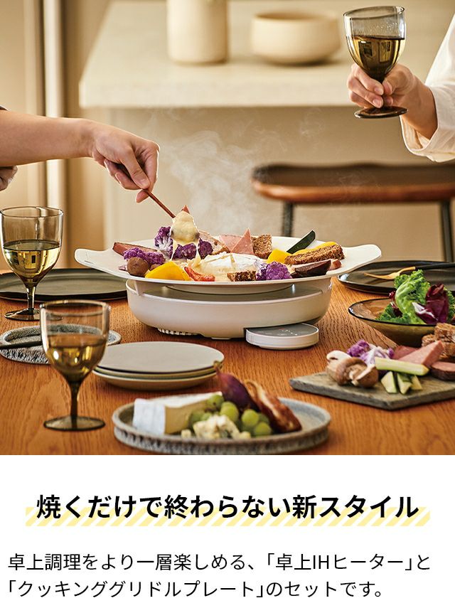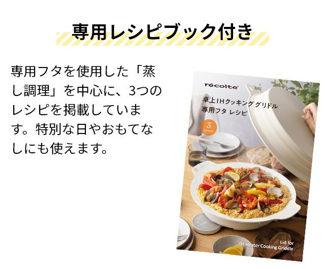 他の画像を見る 円形フォルム「卓上IHヒーター」と、調理できる大皿「クッキンググリドルプレート」と「専用フタ」のセット。みんなで熱々の料理を囲めば食事がさらに美味しく! レコルト 【選べる3大特典】 マルチグリドル 卓上IHクッキンググリドル 専用フタセット RIH-1 プレートセット プレートとフタセット グリドルパン 蓋 シリコン製 IH 33cm 折りたためるフタ 省スペース 焼肉 蒸し調理 蒸し餃子 ステーキ recolte 当店特別価格 ¥ 22,660 税込 詳細を見る お気に入りに登録する