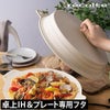 卓上IHクッキンググリドル(別売)にお使いいただける、「recolte 卓上IHクッキンググリドル 専用フタ」です。高さのある食材にも蓋が出来るのはもちろん、蒸し料理にも大活躍。餃子やパエリア、蒸し野菜など、グリドルを使ったレシピの幅が広がります!シリコーンゴム製のため、フチを支えながら天面を折り込むと、よりコンパクトに収納が可能。