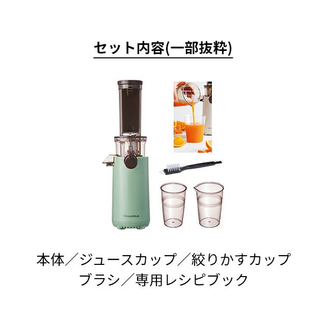 他の画像を見る 栄養満点の一杯を楽しめる!ミニスロージューサー レコルト 【選べる2大特典】 ジューサー コールドプレスジューサーミニ RCJ-1 コールドプレスジューサー スロージューサー 低速ジューサー 小型 ミキサー 圧搾式 小さめ 栄養 壊れない 皮ごと 一人暮らし コンパクト 繊維 分ける お手入れ簡単 recolte Coldpress Juicer 当店特別価格 ¥ 8,800 税込 詳細を見る お気に入りに登録する
