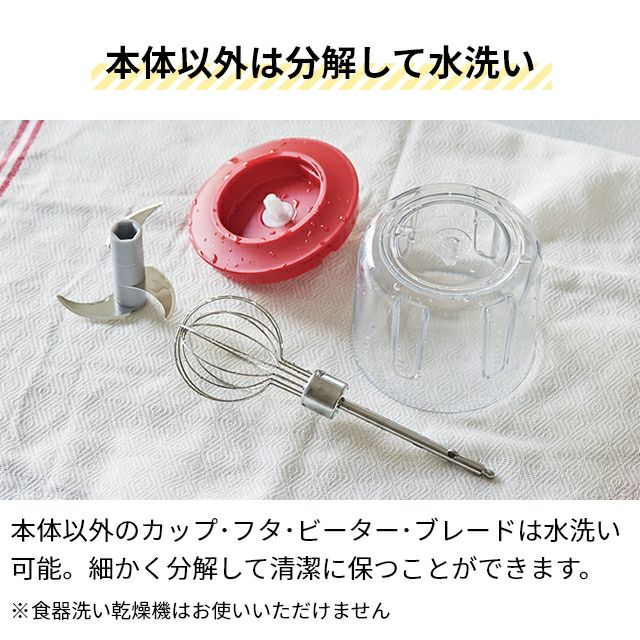 他の画像を見る 泡立て・撹拌・みじん切りの1台3役。生クリームや卵白の泡立てから、にんにくやしょうがなどのみじん切りがアッという間に完成!充電式のコードレスで、超軽量の約300g。 レコルト 【選べる豪華特典】 ハンドミキサー コードレス ホイップ&チョッパー RCW-1 泡だて器 ホイッパー コードレス 電動 泡立て ビーター 充電式 みじん切り 生クリーム 小型 薬味 アタッチメント ニンニク コンパクト メレンゲ ミニ 軽量 recolte 当店特別価格 ¥ 4,400 税込 詳細を見る お気に入りに登録する