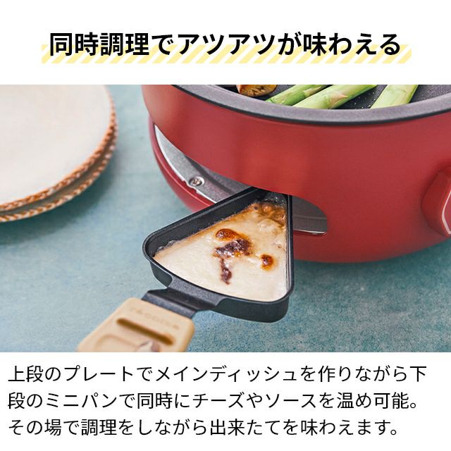 他の画像を見る ラクレットやフォンデュに加え、たこ焼きや蒸し料理、ポップコーンも気軽に楽しめるマルチな卓上調理器。下段に4つのミニパンがセットでき、ソースが同時に調理可能です。 レコルト 【2大特典】 ラクレットグリル パーティークッカー RRF-3 卓上グリル 電気グリル グリル鍋 円 コンパクト おしゃれ 小型 チーズフォンデュ レシピ 野菜 ヒーター 下段 上段 蒸し野菜 ポップコーン たこ焼き recolte Party Cooker 当店特別価格 ¥ 12,100 税込 詳細を見る お気に入りに登録する
