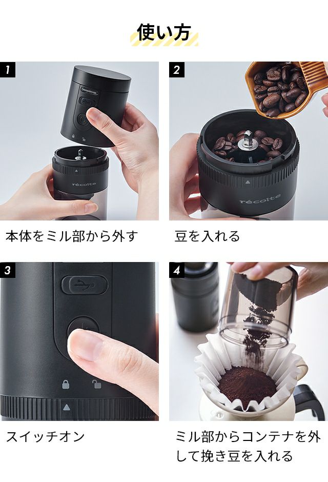 他の画像を見る 日常からアウトドアまで自動で豆挽きが楽しめるコンパクトなコードレスコーヒーグラインダー。セラミックコーン式ミルを採用し、雑味を抑えて豆本来の味と風味を保ちます。 レコルト コーヒーミル コードレス コーヒーグラインダー RCM-3 電動ミル ミル コンパクト 小型 軽量 ポータブル 電動 自動 充電式 コーン式 セラミック おしゃれ アウトドア キャンプ オフィス recolte Cordless Coffee Grinder 当店特別価格 ¥ 4,400 税込 詳細を見る お気に入りに登録する