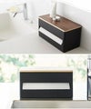 ロールタイプのキッチンペーパーを片手でカットできる「RIN 片手でカット隠せるキッチンペーパーホルダー S」。四角形の置き型で、木製とスチールの組み合わせがおしゃれ!蓋付きで隠して収納できるので、ごちゃつきを抑えられます。シャフトが入っていてペーパーの取り出しがスムーズ!取り出し口にシリコーンのストッパーがあり、サクッと切れるのが気持ちいいホルダーです。