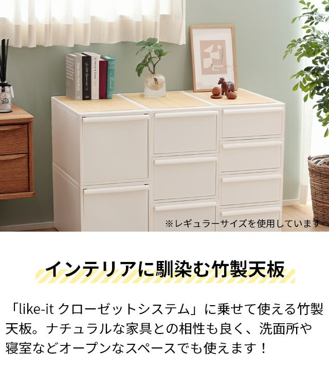 他の画像を見る クローゼットシステム専用の竹製天板。乗せるだけで無機質な衣装ケースに温かみをプラス!オープンスペースで使いやすく、ナチュラルな家具とも相性の良いアイテムです。 ライクイット 専用天板 クローゼットシステム用竹製天板 ワイド カラーボックス 収納ボックス 引出しケース 収納ケース チェスト 甲板 棚 アクセサリー置き場 乗せるだけ ナチュラル 作業台 インテリア 高級感 ワードローブ オープン収納 like-it 当店特別価格 ¥ 2,420 税込 詳細を見る お気に入りに登録する