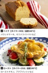 エアフライで唐揚げなどの揚げ物、ベイクでパウンドケーキなどのお菓子、ローストでチキンなどお肉調理、グリルで焼き魚やグラタン、リヒートでお惣菜の温め直しなどができます。
