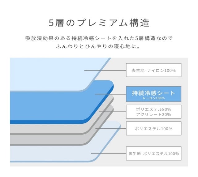 他の画像を見る 布団に入った瞬間にひんやり!肌が触れると熱を奪ってくれる敷きパッド。接触冷感Qmax値0.5で涼しく快適。プレミアム5層式でふんわりとひんやりを両立した寝心地です。 ナイスデイ 超ひんやり冷感 プレミアム5層 敷きパッド Q-MAX0.5 ダブル ベッドパッド パッドシーツ 敷パッド 夏 水洗い 冷感 かわいい ずれない 防ダニ 洗える おしゃれ 接触冷感 洗濯 ひんやり レーヨン マットレス 布団 冷たい niceday 当店特別価格 ¥ 3,980 税込 詳細を見る お気に入りに登録する