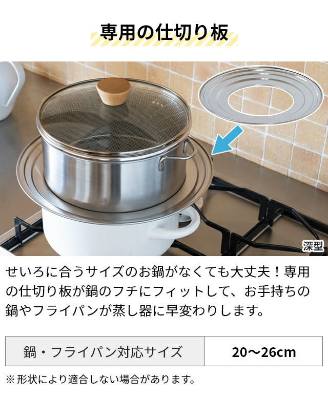 他の画像を見る 鍋のフチにフィットして、お手持ちの鍋やフライパンが蒸し器に早変わり。汚れとサビに強いステンレス製で、丸洗いOK。食洗機にも対応でお手入れ簡単。安心の日本製です。 【専用蒸し板】ビーワースセレクション すっきり暮らすステンレスせいろ 仕切り板単品 蒸し板 受け台 蒸し台 せいろ 蒸し器 日本製 ステンレス 20cm 21cm 22cm 23cm 24cm 25cm 26cm 蒸籠 鍋 フライパン 食洗機対応 洗える bws SELECTION 当店特別価格 ¥ 1,650 税込 詳細を見る お気に入りに登録する
