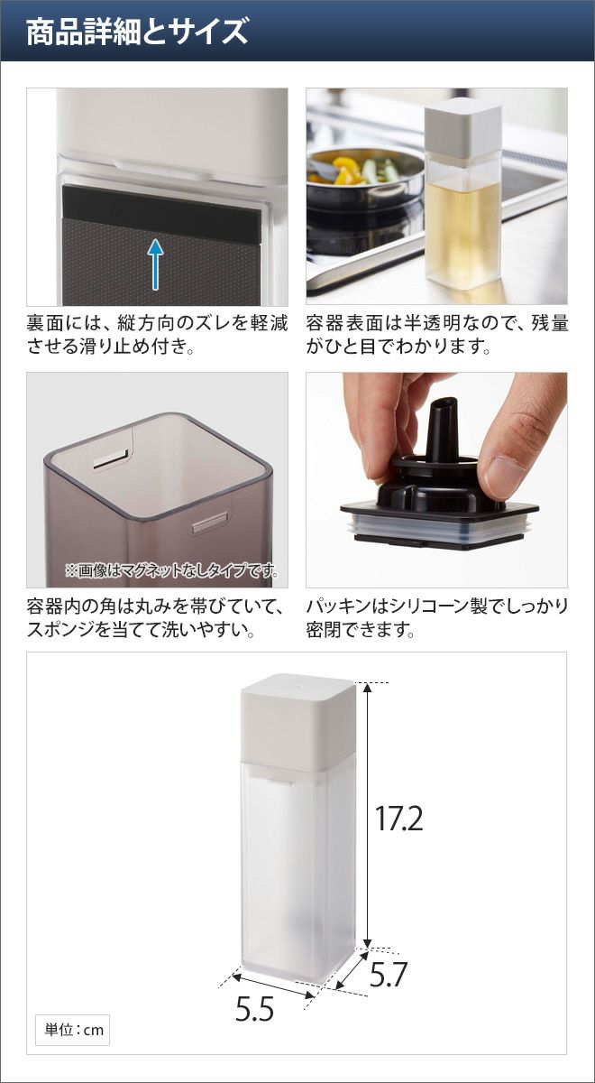 他の画像を見る 山崎実業/調味料入れ/おしゃれ/調味料ボトル/詰め替えボトル/マグネットボトル/オイルボトル/ドレッシングボトル/醤油差し/液体/使いやすい/卓上/密閉/浮かせる/スリム/ケース/北欧 山崎実業 調味料入れ おしゃれ 調味料ボトル 詰め替えボトル マグネットボトル オイルボトル ドレッシングボトル 醤油差し 液体 使いやすい 卓上 密閉 浮かせる スリム ケース 北欧 マグネット [tower タワー マグネット調味料ボトル 5718 5719] 当店特別価格 ¥ 1,650 税込 在庫切れ 詳細を見る お気に入りに登録する