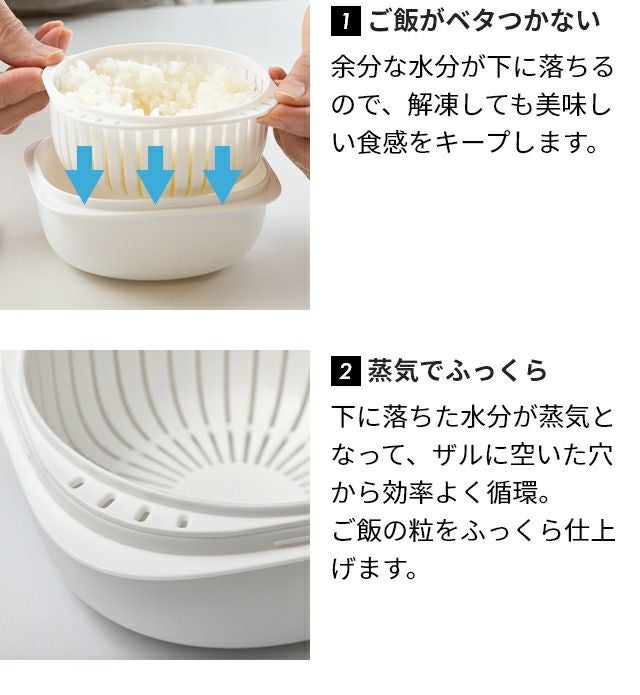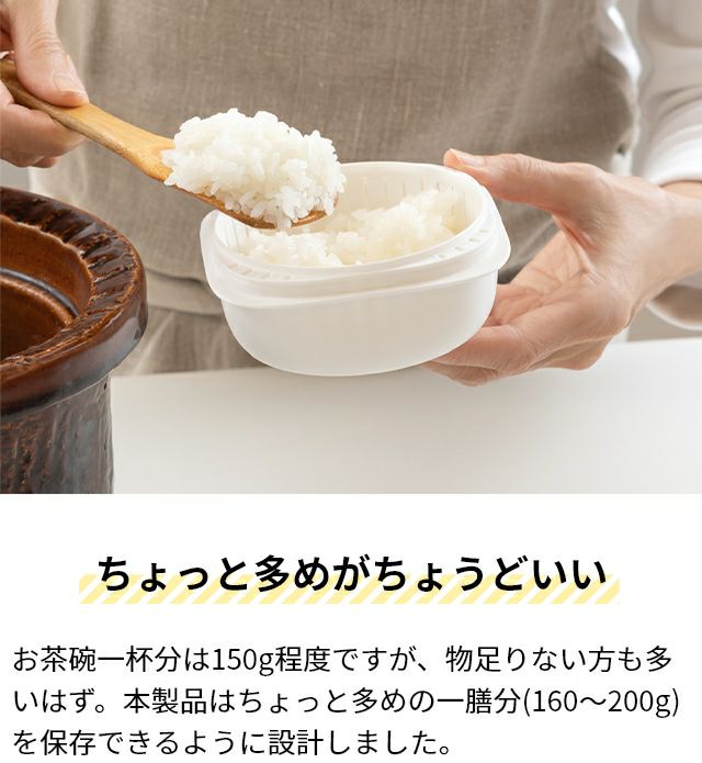 他の画像を見る ザルによる二重構造で、冷凍ご飯を美味しく保存、レンジでふっくら解凍できる冷凍ごはん容器。お茶碗1膳分160~200gが保存できるやや大きめサイズ。食洗機対応です。 ライクイット 蒸気であたためる冷凍ごはん容器 4個組(収納ボックス付き) ご飯容器 保存容器 冷凍保存容器 蒸し器 1膳 日本製 おしゃれ 200g プラスチック 洗いやすい 重ねて収納 米 大きめ 四角 丸型ザル 食洗機対応 レンジ 二重構造 like-it 当店特別価格 ¥ 3,300 税込 詳細を見る お気に入りに登録する