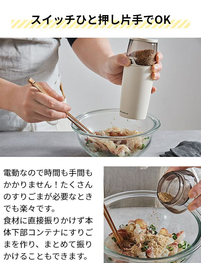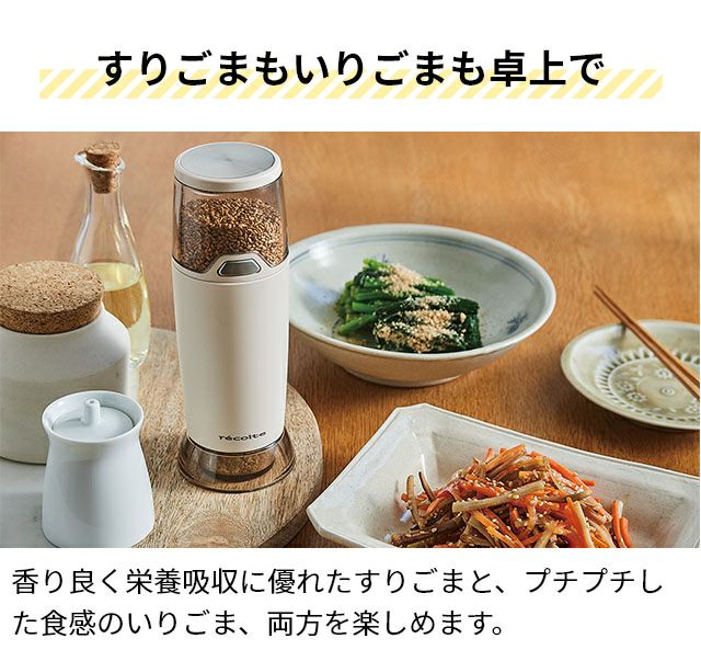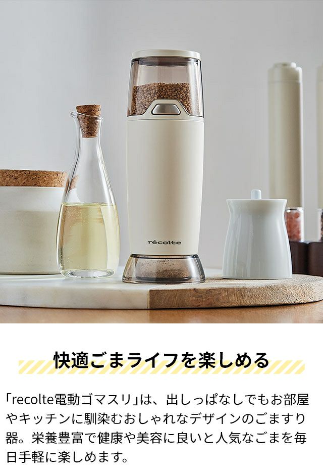 他の画像を見る 「recolte電動ゴマスリ」は、出しっぱなしでもお部屋やキッチンに馴染むおしゃれなデザインのごますり器。栄養豊富で健康や美容に良いと人気なごまを毎日手軽に楽しめます。 レコルト ごますり器 電動ゴマスリ RSG-1-W ごまミル 電動 セラミック 卓上 小さい 洗いやすい 調理器具 おしゃれ 人気 おすすめ 乾電池式 すりごま いりごま 黒ごま 白ごま 金ごま 胡麻 挽きたて 風味 味わい 手軽 調味料入れ recolte 当店特別価格 ¥ 2,970 税込 詳細を見る お気に入りに登録する