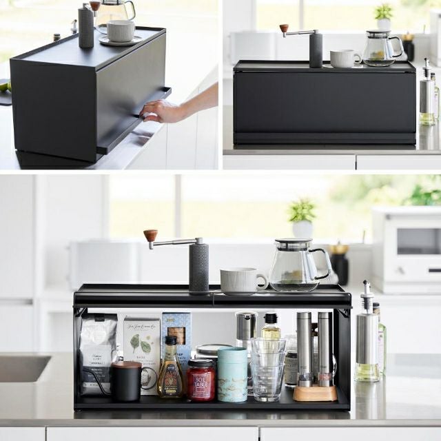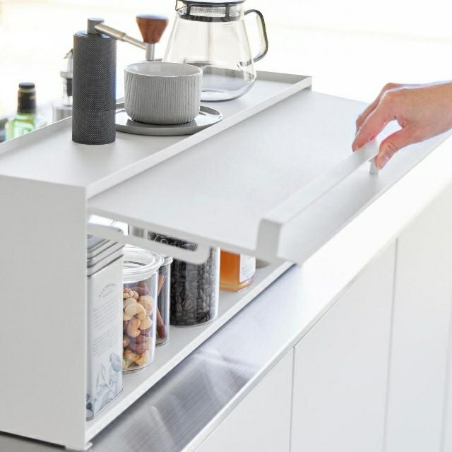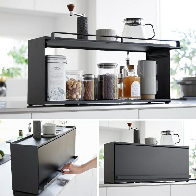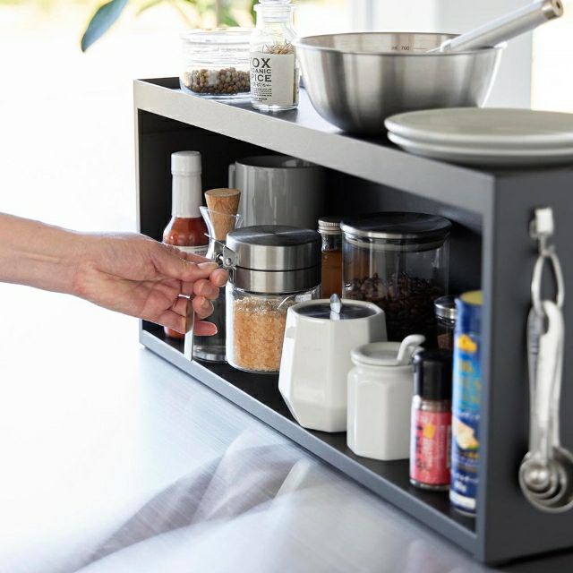 他の画像を見る キッチンカウンターの卓上にある小物をまとめてすっきり整頓できる収納ラック。リビングからは扉付きでごちゃつきを隠し、キッチン側は取りやすいオープンスタイルです! 山崎実業 前が開くキッチンカウンター上収納ラック タワー D15 4903208014526 4903208014533 調味料ラック スパイスラック ブレッドケース おしゃれ マグネット 隠す 目隠し スリム 扉付き tower キッチン収納 yamazaki タワーシリーズ 当店特別価格 ¥ 8,910 税込 詳細を見る お気に入りに登録する
