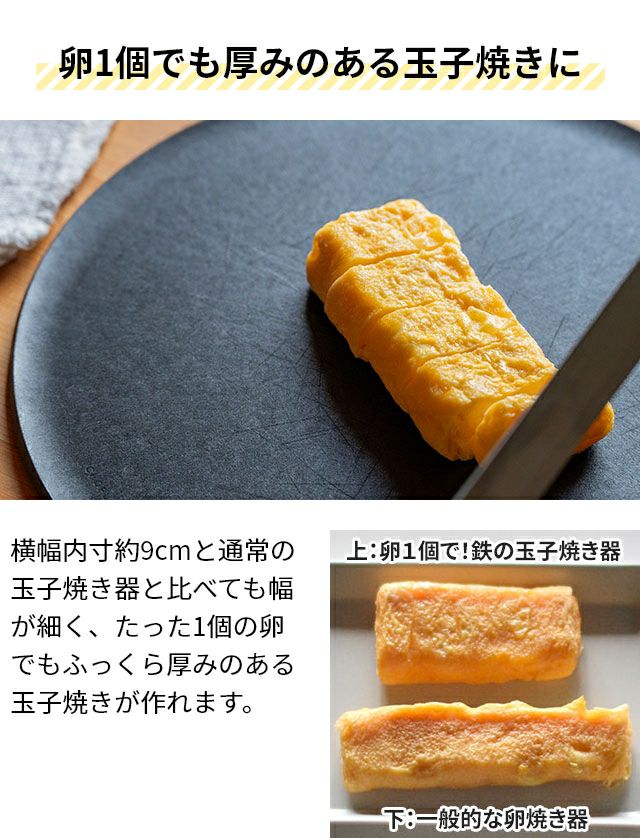 他の画像を見る 少量の玉子焼きをキレイに美味しく焼ける「卵1個で!鉄の玉子焼き器」。熱伝導率が良い鉄製で一気に焼くことでふっくらとした仕上がりに。耐久性も高い一生モノです。 ビーワースセレクション 【選べる豪華特典】 卵焼き器 鉄 卵1個で!鉄の玉子焼き器 SM-395003 たまご焼き器 フライパン エッグパン 卵1個 鉄製 ih対応 ガス火 スリム 使いやすい 長持ち お弁当 日本製 燕三条 四角い スクエア 角型 bws SELECTION 当店特別価格 ¥ 4,400 税込 詳細を見る お気に入りに登録する