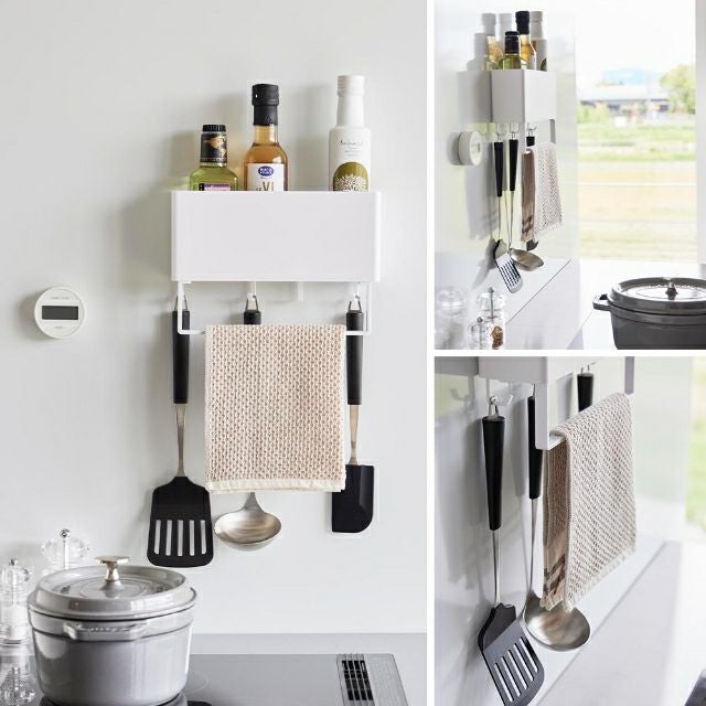 他の画像を見る 調味料入れとキッチンツールをまとめて収納する調味料ラック!背面のマグネットで壁に貼るだけで簡単取付け。清潔感を感じさせる白色のカラーリングがおしゃれ! 山崎実業 マグネット調味料ラック&フック プレート 4903208016612 1661 調味料ストッカー 収納ラック 棚 スパイスラック スリム マグネット 浮かせる おしゃれ 壁 吊り下げ Plate キッチン収納 マグネット収納 浮かせる収納 吊り下げ収納 yamazaki 当店特別価格 ¥ 2,200 税込 詳細を見る お気に入りに登録する