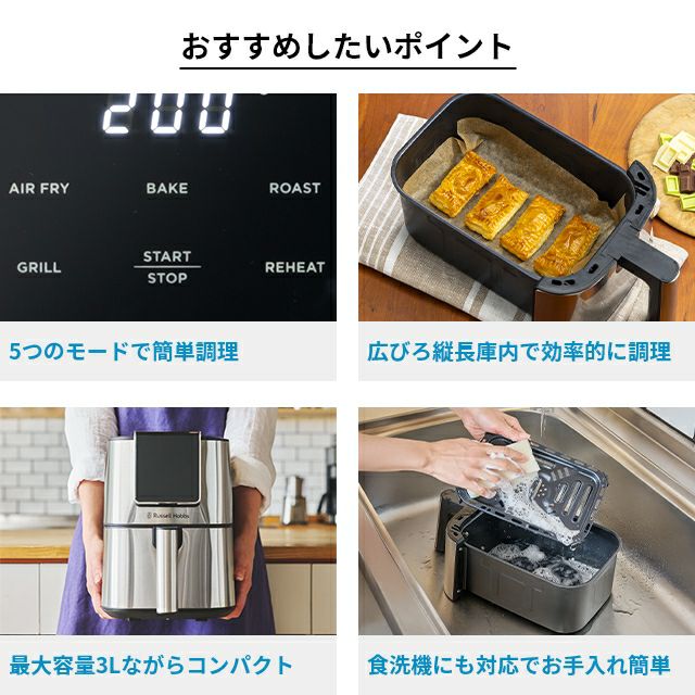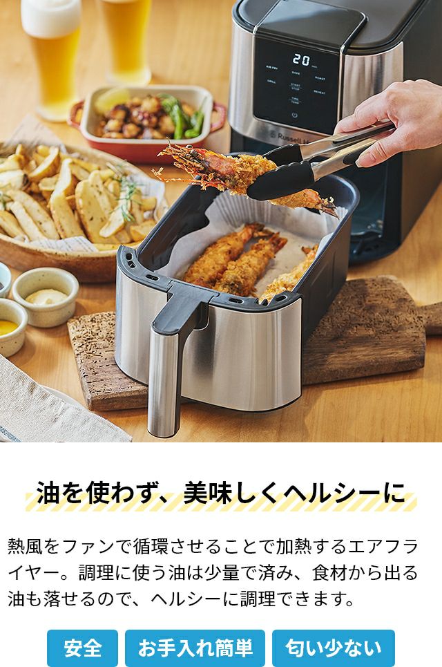 他の画像を見る 時短でヘルシー、しかも後片付けが楽ちん!油なしでヘルシーノンフライ調理ができるエアフライヤー。揚げ物以外にも、焼く、温めるなど多彩な調理が、これ1台で叶います。 ラッセルホブス 【選べる2大特典】 エアフライヤー エアフライオーブン 1420JP ノンフライヤー 電気フライヤー 3L エアオーブン 油で揚げない ノンオイルフライヤー レシピ付き 専用ペーパーライナー 温め直し 焼き魚 揚げ物 Russell Hobbs 当店特別価格 ¥ 16,500 税込 詳細を見る お気に入りに登録する