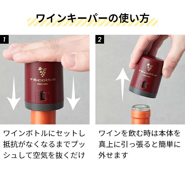 他の画像を見る 力もコツもいらないレコルト充電式ワインオープナーと、飲みかけのワインの酸化を遅らせることができるレコルトのワインキーパーをセットでお届けします。 【選べる豪華特典】 レコルト ワインオープナー 電動 自動 ワインキーパー セット おしゃれ 簡単 USB充電 RWO-1 RWK-1 女性 プレゼント ギフト 結婚祝い ボトルオープナー 栓抜き コルク抜き recolte キッチン家電 便利グッズ 当店特別価格 ¥ 5,170 税込 詳細を見る お気に入りに登録する